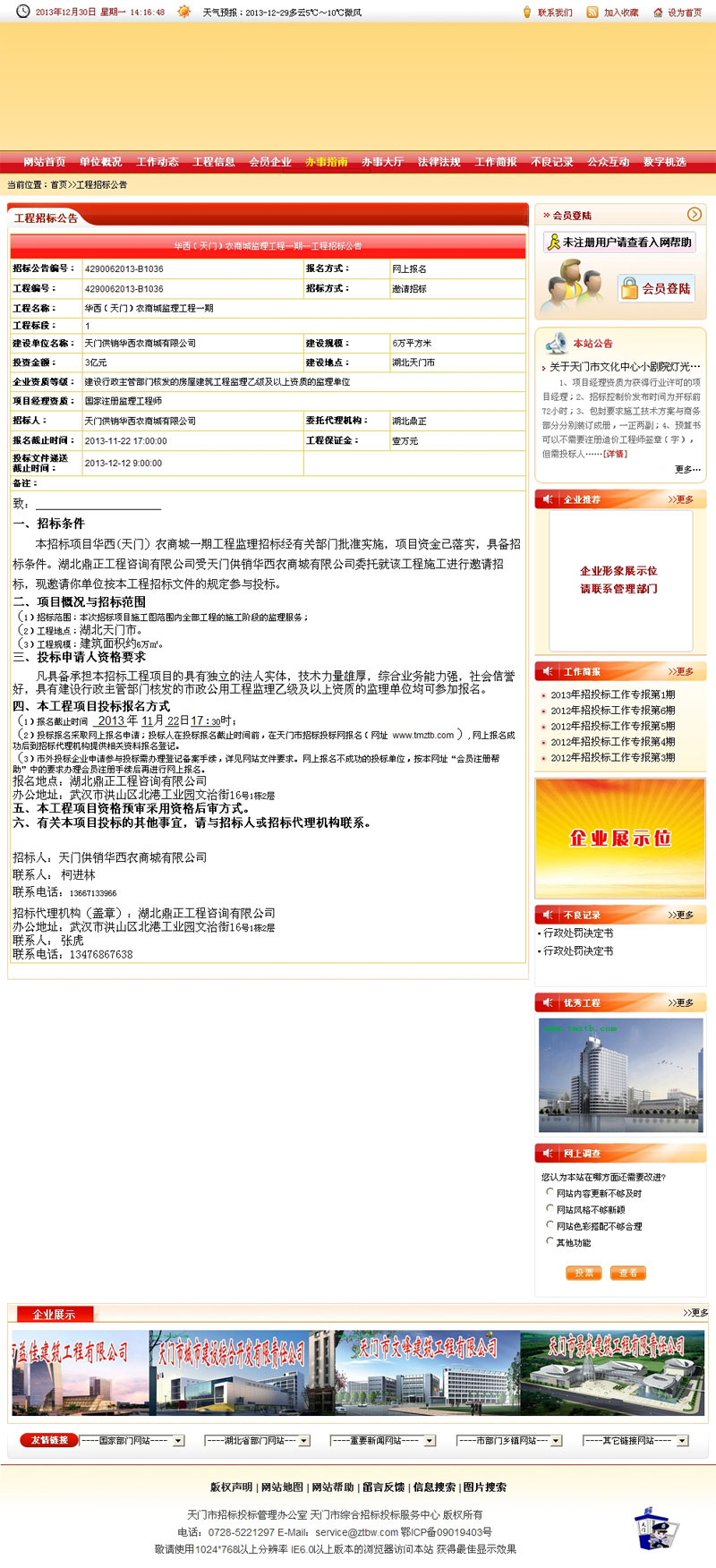 華西(天門)農商城項目市場一期(三標段)施工總承包工程