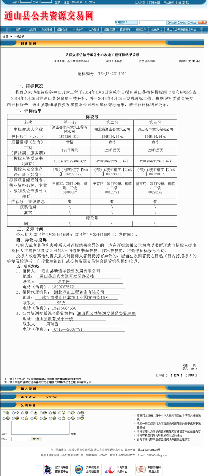 縣群眾來訪接待服務中心改建工程評標結果公示