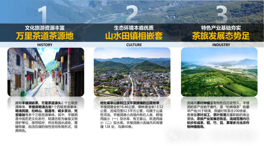 以本項目為例,羊樓洞港小流域地處幕阜山脈和江漢平原接壤的丘陵地帶,流域內有羊樓洞港、柳林港兩條水系,整體呈現山、水、田、鎮相嵌套的格局;流域內擁有明清時期國際茶葉貿易名鎮——羊樓洞古鎮,這里是歐亞萬里茶道的源頭;流域內茶葉種植特色歷史悠久,茶旅產業發展態勢正足,并且已初步形成茶、稻、竹、芍、果等多元化農作物種植格局。