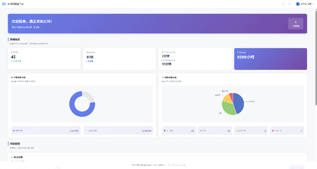 鼎正自主研發的“鼎慧通”,正是為了打破這一瓶頸而生。它能像一位不知疲倦的高級助理,在20分鐘內完成過去需要數周的基礎工作:自動讀取項目資料、解析關鍵數據、結合工程咨詢數據庫私域數據生成咨詢報告,再由業務人員補充關鍵決策信息,即可生成一份質量評估達80分左右的高質量文本初稿。