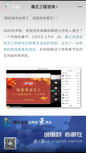 因疫情防控的需要,很多行業不得不延遲復工,建設行業亦是如此。為有效應對這次疫情,將其影響降到最低,鼎正工程咨詢股份有限公司領導層快速反應,制定了一系列緊急預案,采取應對疫情的各項措施,并開展遠程辦公和線上培訓學習。