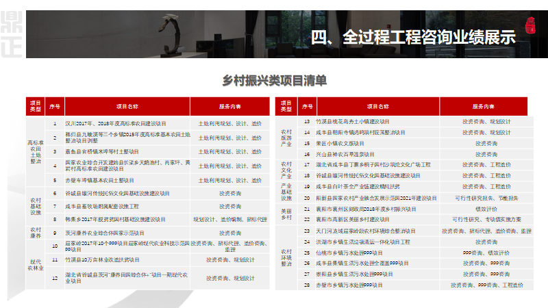 鼎正始終踐行“以全過程工程咨詢及PPP全生命周期咨詢服務為先導、以投資管控為主線、以項目增值為目標”的一站式工程咨詢服務理念,積極探索參與鄉(xiāng)村振興的領(lǐng)域與路徑,緊跟鄉(xiāng)村振興新動向,充分發(fā)揮工程咨詢企業(yè)高智力支撐作用,干出工程咨詢新作為!