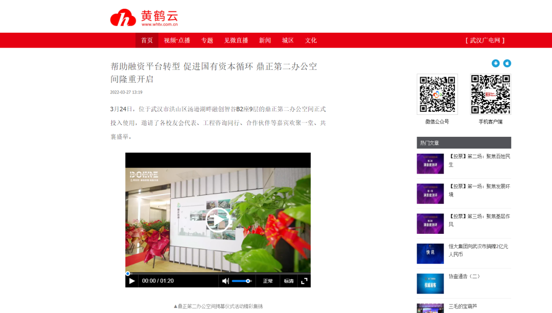 ▲武漢廣播電視臺(tái)漢新聞對(duì)鼎正第二辦公空間揭幕儀式報(bào)道