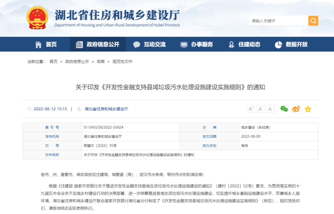 根據《住建部 國家開發(fā)銀行關于推進開發(fā)性金融支持縣域生活垃圾污水處理設施建設的通知》(建村〔2022〕52號)要求,為貫徹落實黨的十九屆五中全會關于實施鄉(xiāng)村建設行動的決策部署,進一步統籌推進縣域生活垃圾污水處理設施建設,切實提升城鄉(xiāng)基礎設施建設水平,改善城鄉(xiāng)人居環(huán)境,湖北省住房和城鄉(xiāng)建設廳聯合國家開發(fā)銀行湖北省分行制定了《開發(fā)性金融支持縣域垃圾污水處理設施建設實施細則》(附后),現印發(fā)給你們,請各地結合實際參照執(zhí)行。