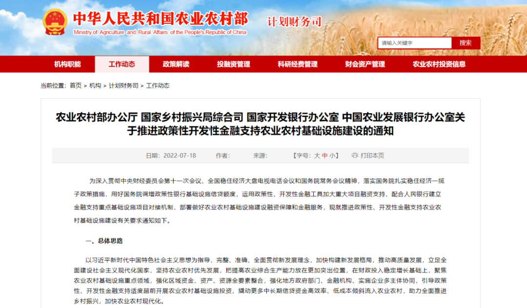 八大部門聯合印發:《關于擴大當前農業農村基礎設施建設投資的工作方案》