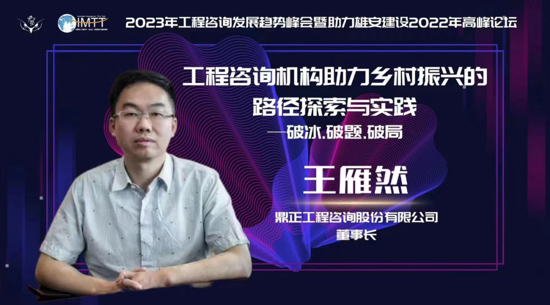王雁然董事長(zhǎng)受邀參與論壇并發(fā)表主題演講,他以《工程咨詢機(jī)構(gòu)助力鄉(xiāng)村振興的路徑探索與實(shí)踐》為題,從破冰、破局、破題三個(gè)層次逐步切入,先后論述了新時(shí)代背景下推進(jìn)鄉(xiāng)村振興戰(zhàn)略面臨的機(jī)遇與挑戰(zhàn)。