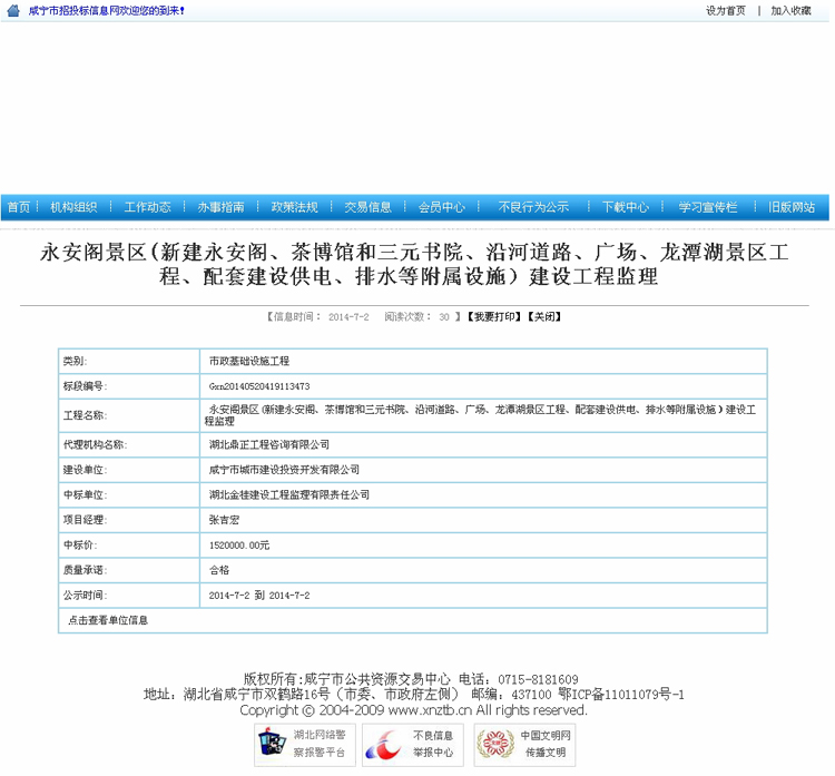 永安閣景區(新建永安閣、茶博館和三元書院、沿河道路、廣場、龍潭湖景區工程、配套建設供電、排水等附屬設施)建設工程監理