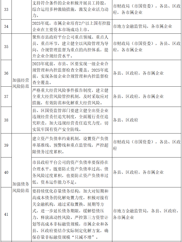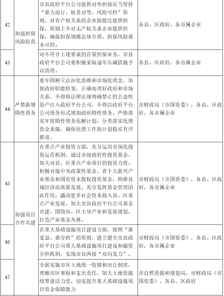 市縣政府平臺(tái)公司整合升級(jí)和市場(chǎng)化轉(zhuǎn)型“12345”行動(dòng)計(jì)劃重點(diǎn)任務(wù)分工表