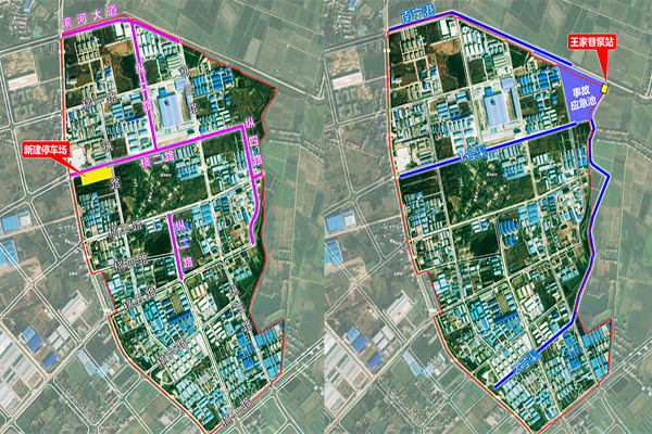 設計理念:本項目總投資1.76億元,建設內容為園區道路提升5km(道路硬化、路燈、給排水、弱電及電纜敷設);園區防洪排澇及水質提升工程,其中渠道整治9km,王家巷泵站(3.2m3/sx2)新建;敷設供水管道DN300,20000m;敷設供氣管道DN300,10000m;新建各類車位278個;園區智能化工程(監控、中控室、設備間等)。