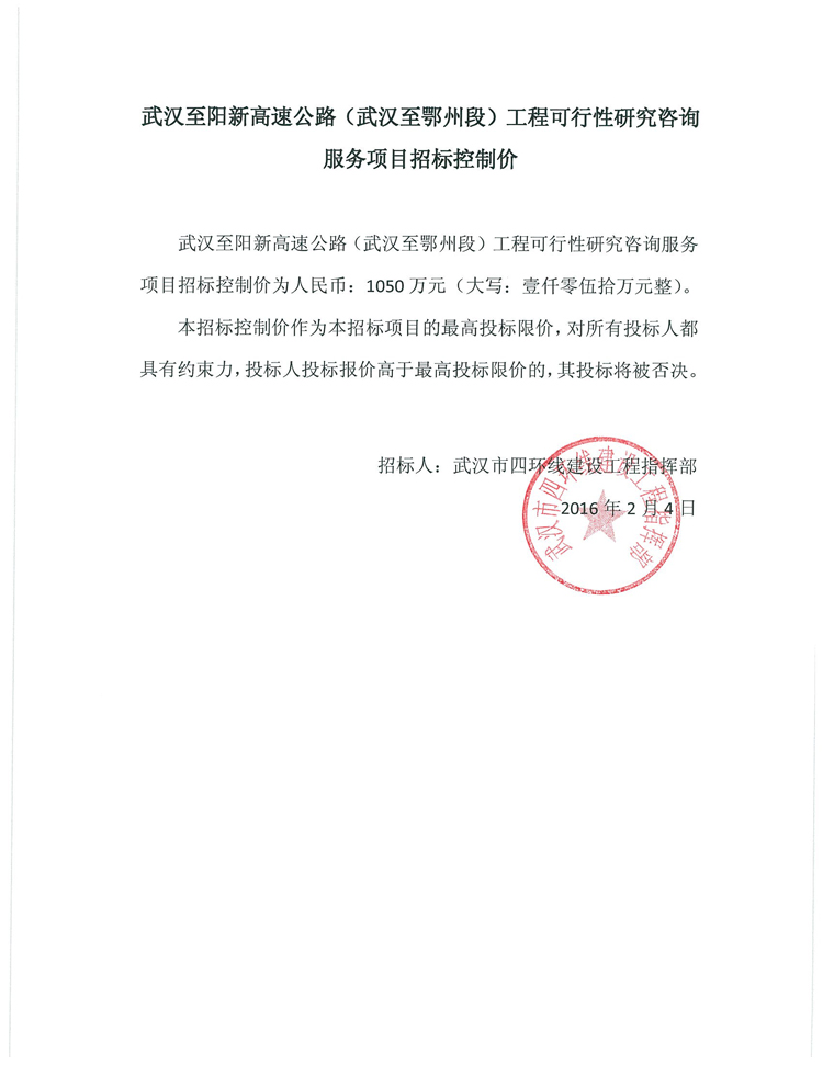 武漢至大悟高速公路工程可行性研究咨詢服務(wù)項(xiàng)目招標(biāo)控制價(jià)通知