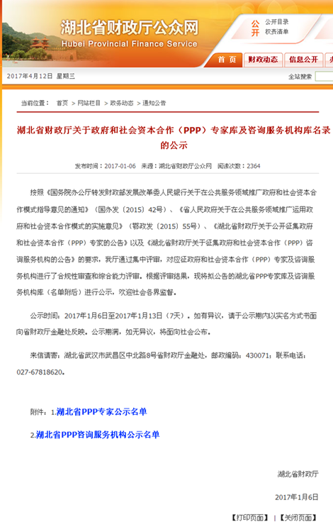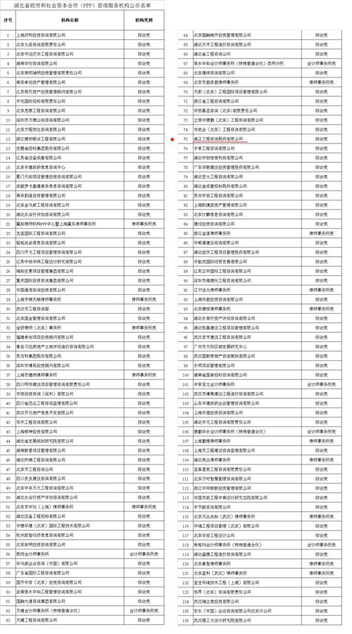 我司入選湖北省財政廳PPP咨詢服務機構庫,同時3位同事入選湖北PPP專家庫