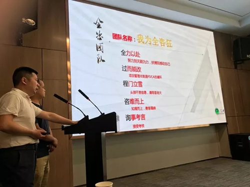 在答辯環節,5位評審專家各抒己見,紛紛提出自己的疑問,并提出各自的建議。董事長王雁然首先肯定了第一組在短時間內將團隊力量調動起來,提出下一步要完善和修改全咨報告,從大的方面加強工作思路。副總經理兼技術總監朱立冬強調在全咨項目報告中要形成新的工作范式,在不斷否定中提高自身的能力。